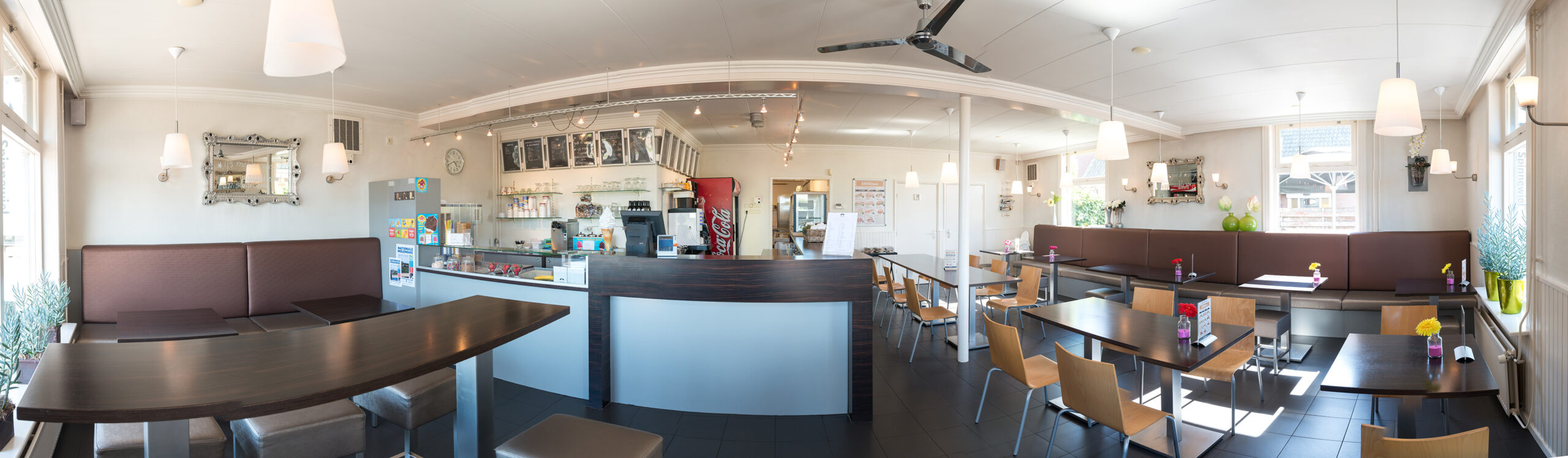 - Een modern cafetaria met 40 zitplaatsen en een groot terras
